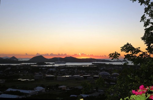 Our studio apartment is 10 minutes from the airport, downtown St. Johns, and the beach. We sit atop a hill with a grand view of the Caribbean Sea and the capitol. Your small veranda, or the one above your space, will let you see the wonderful sunsets that occur over the Caribbean Sea on a regular basis. Our overall property also includes our small pool, main veranda, gardens, dogs, chickens, and turtles (no kidding).