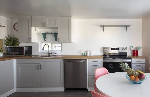 after 20 years of ownership and many upgrades along the way, we are excited to give others the opportunity to experience our “favorite place” and the joy of being oceanside on geiger key! with the quaint charm of the “old keys”, our home is located in a quiet neighborhood on a dead-end road It has been lovingly updated over the years and is a true tropical abode. The inside is open, airy and full of natural light. Sliding glass doors on the porch open into a lovely, bright living room, which is open to the kitchen and a sweet breakfast nook. The kitchen overlooks our backyard canal and the breakfast nook has a large window that looks directly out at the Atlantic Ocean. It could serve as a great space in which to work for anybody doing so remotely.