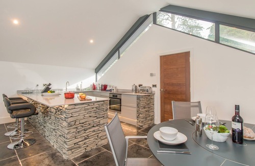 boathouse on the water is an enchanting boathouse conversion resting on the outskirts of bowness-on-windermere in the lake district There is one king-size-bedroom within the studio layout and a ground-floor shower room, making the property suitable to sleep up to two people. On the first floor is an open-plan layout holding the bedroom area as well as a kitchen, dining area and a siting area with a balcony. Outside is your own private hot tub as well as a designated parking space for one car. Boathouse on the Water is a dazzling dwelling, ideal for your romantic retreat in the Lake District.