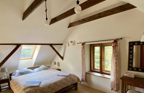 this spacious home has a welcoming and cozy feeling, keeping the character of a forest cottage, with solid oak floors and built-in furniture, antique floor tiles, an interesting collection of art and curios, and a vast terrace and garden Naturally, it also has all the modern comforts needed to make it a place to recharge and relax in comfort, as well as several well-maintained cross-bikes for those who prefer to be active and hit the local cycling trails.