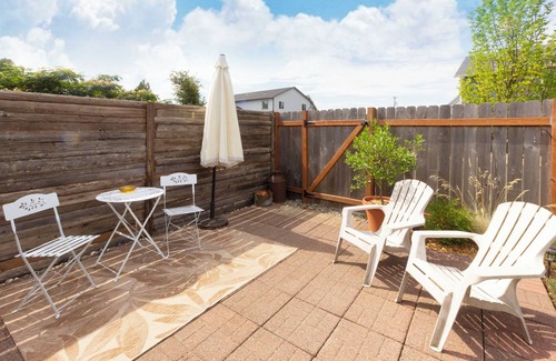 Have a fun and relaxing stay with your loved ones at this cozy and stylish bohemian bungalow. Located mere blocks from historic downtown, the city of Silverton offers a myriad of experiences to be had. Perfect for a family or couple getaway. Relax in your own private hot tub in a quaint yard, sitting atop a future urban micro farm. Stay in and cook or take a short and leisurely stroll to one of the many restaurants, breweries, or bars Silverton has to offer. This charming and newly renovated historic home captures the essence of in-town Silverton living. It's picturesque modge-podge decor makes you feel at home and cozy amidst the many house plants and thoughtful details. A 900 sq ft 1-level bungalow comfortably accommodates up to 6 guests without any additional cost at the time of booking, with an option to add up to 3 more guests for an additional $25 per person, per night. We do require that all guests are accounted for at the time of booking. Any guests not accounted for during booking process will incur an additional fee of $25 per person, per night. There are 3 bedrooms located on one floor to comfortably sleep 6 people: -Sun Room: Medium firm memory foam mattress against a bright and beautiful hand painted sun mural that captures the amazing morning sunlight. -Moon Room: Medium firm memory foam mattress against a soft 8 setting LED twinkle light curtain that you can set to create a warming magical atmosphere. -Reading Room: An office space with a twin sized medium firm memory foam day bed, with a twin roll out trundle option that is perfect for keeping the kids happy. Rest your laptop on a vintage desk with a view overlooking the backyard micro-farm. It's a perfect space to accomplish your business tasks or do mindful journaling. Complete with pens, pencils, markers, crayons and coloring books, your kids are sure to stay busy while you're cooking dinner. -Jungle Room: Living room area with a new comfortable couch that can sleep a single person. Movie nights are possible with a flat screen TV complete with a Roku stick that can access streaming sites such as Apple TV, Hulu, Netflix, HBO Max, Paramount, and Amazon Prime. The large wood slab coffee table doubles as a floor seat dining table with comfortable floor pillows that can host a fun and unique dining experience..