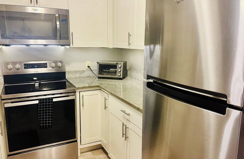 comfortable mattresses (one queen, one king) and blackout curtains Couch may be used for a 5th person and there is an air mattress available.