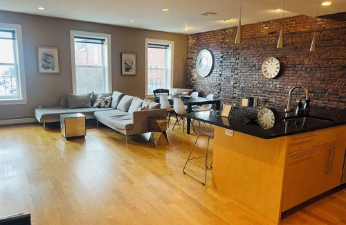 120 - 5⭐️ ⭐️ ⭐️ ⭐️ ⭐️ star reviews on another booking platform. Search by our title to see how popular our rental is along with our amazing reviews. “Harbor views!Free Parking!Modern North End 3 bed.” Beautiful 3 Bedroom 1.5 Bath modern apartment in Boston's historic North End. PARKING INCLUDED in the parking lot directly across the street. Sits across the street from the water with Direct views of the Boston Harbor out of every front window. The waterfront is the absolute best area in the North End. Just down the street from the Paul Revere House and steps to the freedom trail. One block away from all the action on Hanover Street with over a hundred Italian restaurants and quaint coffee shops. Modern apartment with exposed brick throughout. Small quiet building right along the waterfront. This Boston condo is in a very typical small, Old school 2 story walk up Brick building and the unit has been renovated. Live like a North Ender in the open spacious apartment that has everything right on your doorstep..