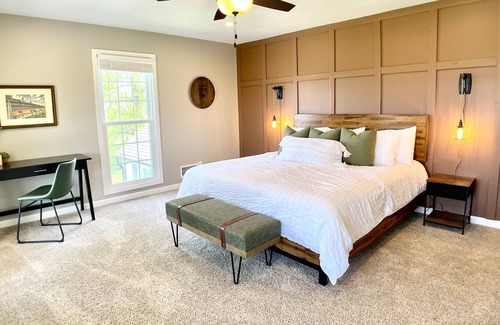 Enjoy the ultimate country getaway at this stunning home that sets the standard for luxury and elegance along the famed Bourbon Trail. The interior spans 5,000+ sq. ft. across 3 levels of impeccably designed space and features 4 bedrooms, 5 king-size beds, and 3.5 baths to comfortably accommodate up to 10 guests. Set on over 3.5 peaceful acres of rolling lawns, the estate features a long list of luxe amenities including inground pool, hot tub, speakeasy, fire ring area, & billiards room.
