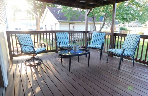 Enjoy your stay at this centrally located 2 bedroom private home. 1 king size bed and 1 queen size bed for a great night's sleep. Your pets and you will enjoy the convenience of the sliding door from the kitchen to an outside covered deck that connects with fenced in backyard. Five minute drive to downtown Peoria. Washer and dryer are available for your use in the unfinished basement. Driveway available for parking..