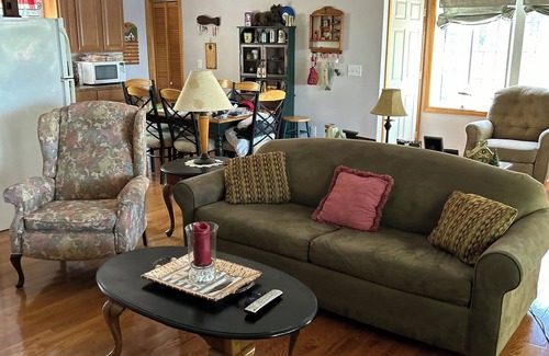 Relax with the whole family at this peaceful place to stay, near Acadia National Park, Bar Harbor and all of Downeast Maine. Located on Branch Lake which is the town's pristine water supply. Beautiful walk in beach frontage with a 50 ft aluminum dock for swimming and boating. You can bring your own boat but must talk to owners prior about state and local restrictions. Pontoon boat and seadoo rentals nearby can be arranged by you. There is an aluminum canoe, 14" row boat and 3 kayaks available on site. There are two rental units on the same property that can be rented separately See Kamp Tahoe on this website. The beachfront and on-site amenities are shared by both units..
