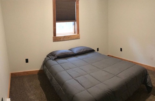 Newly built private duplex over looking Duck Lake Shore with 3 bedrooms and a "gear room" big enough for air mattress provided. One side of duplex is done and ready to rent starting July 15! Next side will not be ready until next season. All beautifully and uniquely built furniture, stairs, cabinets, headboards, bedside tables, pantry shelves, and bunk beds. Huge deck looking out to Duck Lake. Please note that the pictures do not include headboards, coffee table, or bedroom art. Pictures were needed to list property and will be updated with these items! We have another cabin on the adjacent lot that we have been renting out since 2012. Check it out VRBO#348155 if you have a bigger party that could use both!.
