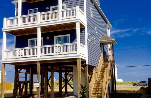 brand new home with elevator completed in 2020! escape to your beautifully maintained beach home away from home one block off the beach for a much needed relaxing and joyful vacation for your friends and family in scotch bonnet soundside of north topsail beach Located three miles north from the heart of Surf City and the brand new high rise bridge. This 4 bedroom 3.5 bathroom home is perfectly situated for you to enjoy the most beautiful views over the Atlantic Ocean and the Intracoastal Waterway. Whether you're looking to get away for a couples retreat or a family vacation, this rental property is suited for your needs.