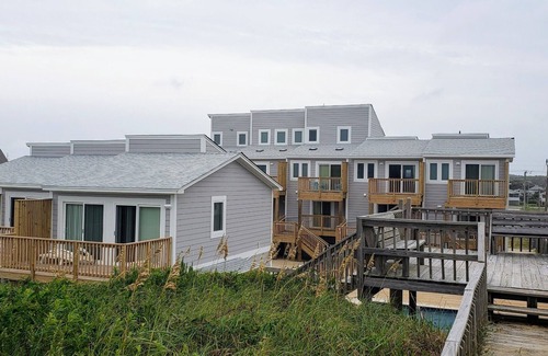 Ocean Front Condo in Kill Devil Hills, North Carolina is in the heart of the OBX. You get a feeling of privacy in this small condo complex. Enjoy the open floor plans great ocean views from the deck, living room, dining area and clear through to the kitchen, while the protective dune and the architecture combine to give you a feeling like you have paradise all to yourself. You can see the ocean, can not see the beach and they cant see you. Beautiful ocean sunrises. The Interior was completely remodeled in 2020. Beautiful waterproof laminate flooring, custom cabinets and granite countertops. All new appliances and well stocked kitchen make it a joy to cook in. The entire Condo is an easy cleaning, maintenance free, must see. The dune deck has all new handrails and stairs, the pool was resurfaced spring of 2020. All you have to do is come and enjoy all there is to offer. There are 2 bedrooms with new carpeting. The Master bedroom has 2 closets, 1 with a vanity area. The 2 bathrooms downstairs with all new Vanities, lighting and flooring. All new 2018 heating and air, Water heater, windows, siding, roof and decks. Comes fully furnished as pictured. Bed linens are provided, please bring your own towels. Includes a Fuse ball table, 65 inch smart TV, Antique look Wifi compatible radio, Vintage look modern phone, a library of books and board games, so you can easily use it as a rental when you are not able to enjoy it yourself. There are restaurants and shopping all around. Walk to dinner or enjoy a nice bike ride. Local attractions so close you can see them from the dune deck: Wright Brothers memorial, Nags head Woods nature Preserve, Nags Head Fishing Pier to the south and Avalon Fishing Pier to the north. Also close by are, Jockey's Ridge and Jeanette's Pier..