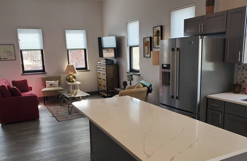 str #0698 “brew with a view” is salida’s newest downtown, family friendly place to roost while visiting this hip and high vibe mountain town This open concept condo is the entire 975 square foot 3rd floor of Moonlight Pizza and Brewpub’s new brewery, with one bedroom, a 3/4 bath, large living room, well-equipped full kitchen and comfortable balcony. Enjoy our historic downtown and a 360 degree unobstructed view of the surrounding majestic mountains from any one of multiple condo vantage points. Lounge in the living room after a great day of adventure and stream your favorite movies on the flat screen Smart TV. Stream your favorite music on the state of the art home sound system. Although rare in this mountain town, our condo is central air conditioned! It gets surprisingly hot in the summer and early fall months and the cool AC guarantees your comfort.
