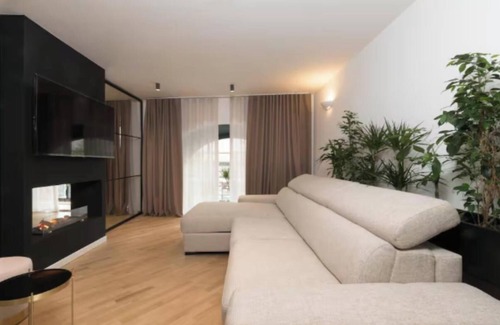 two beautifully designed bedrooms, two modern bathrooms, a fully equipped kitchen, and a large, inviting living room with a cozy fireplace and a sofa bed Newly renovated, with light parquet flooring and a tasteful color palette that creates a bright and serene ambiance. Enjoy air conditioning, WiFi, a dishwasher, a coffee machine, plush towels, and slippers for ultimate comfort.