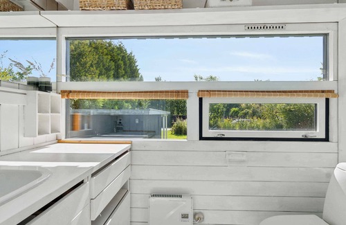 experience authentic danish summer hygge in this bright summer house just 100 meters from the water's edge Architect-designed by Norwegian Turid Haaland with panoramic views of fjord and forest through windows all around.