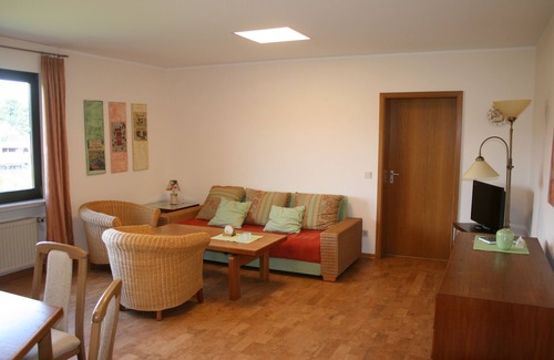 The apartment is located in the extension of our house with a separate entrance. On 56 sqm you have 1 bedroom with double bed, a large living / dining area with sofa bed, a well-equipped kitchen and a bathroom. The fully equipped kitchen allows for a good self catering. There is a small terrace and a covered seating area. The parking for your car is directly opposite our property. Our apartment offers you as a vacationer a variety of excursions and recreational opportunities and many activities, such as hiking on premium trails such as the Westerwaldsteig Bärenkopftour and Wiedweg, paragliding, microlights, guided mushroom walks, canoeing, Nordic Walking Park, Westerwaldsteig, Rheinsteig, guided hikes. Outdoor and indoor pool with sauna. The Rheinpark-Therme in Bad Hönningen, Christmas nativity village Waldbreitbach and much more.