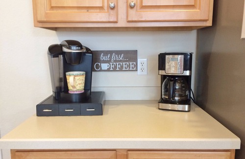 our "foodie" kitchen thoughtfully provides just about every essential, from a keurig coffee maker, to spices, a salad spinner, and bakeware to make food preparation a joy, so please leave your own kitchen at home! your children will instantly gravitate to the eat-in kitchen table and feel right at home while using the available kid-friendly plates, cutlery, and booster seats