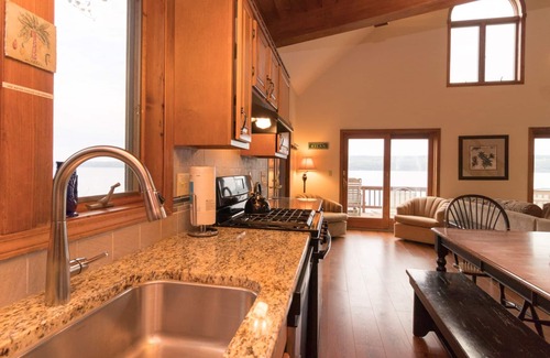 with over 150 feet of natural, level lakefront reaching out over the point, there is room for a variety of lakefront activities Children will love the expansive pebble beach, where they can collect shells and skip stones into the lake. Guests that bring a boat can house it safely in the hoist when not in use, and enjoy sunning and even fishing from the large permanent dock. On calms days, a variety of non motorized watercraft are available to enjoy exploring the miles of shoreline and diverse bird population.