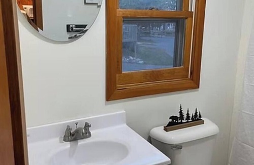 as you step inside, you’ll be greeted by the rustic elegance of the knotty pine interior, creating a warm and inviting atmosphere that feels like home The well-appointed bathroom adds convenience to your stay, while the cabin’s open layout provides the perfect space to relax and connect with loved ones..