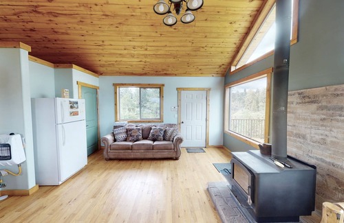 Welcome to your mountain escape in Moab, Utah! This charming one bedroom cabin offers complete privacy and breathtaking views of the surrounding mountains. The cabin's cozy interior features a fireplace and comfortable furnishings, perfect for relaxing after a day of adventure.