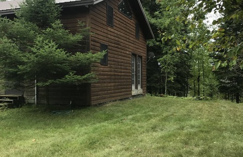 - Rustic cabin in remote wooded area on point overlooking lake.
