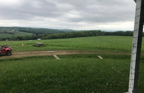 Enjoy off grid living in this beautifully decorated cabin in the hills of Western NY. Scenic views in every direction. Watch the deer and other wildlife from the porch as well as the buggies plodding by. This is the perfect place to unplug and relax. There is NO running water or facilities. There is an outhouse and plenty of water provided in 5 gallon jugs. This is camping! Not accessible during the winter when there is snow - driveway is not maintained..