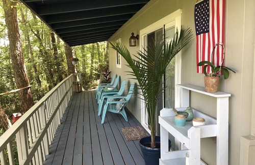 Newly renovated cabin with sleeping arrange for six. Cabin has all new kitchen appliances and all new bedding in bedrooms. Large front porch opens to a beautiful view of the surrounding mountains and Franklin. There are two bedrooms, one with queen size bed and full bath and the other bedroom has 2 full size beds and a full bath.The local town of Franklin is a cozy town, offering fine dining and antique shopping that you can enjoy after a day of hiking trails or canoeing down the Little Tennessee River. There is also plenty of river walk trails and mountain hiking available for you!.