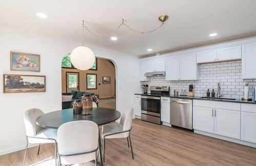 this two story house has a stunning high ceiling in the living area, which is open to the newly renovated kitchen Queen bed in lower bedroom. King bed in upper bedroom. TV in living room and each bedroom.