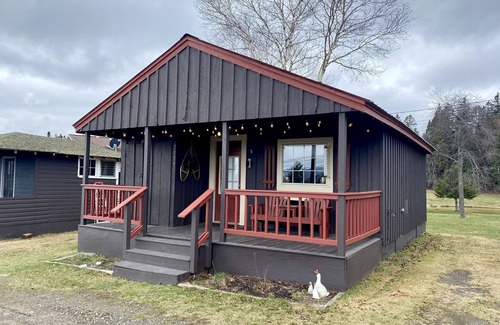 Clean and cozy 2 bedroom cabin features a double bed, 2 twin beds & a twin size sleep sofa. All linens provided, fully equipped kitchen with microwave, stove, refrigerator, coffee maker . Wifi and Smart TV provided.