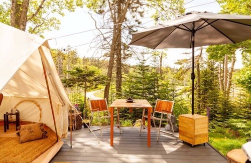 ✓i live in a pre-fab home tucked away at the top of the hill above your tent, hidden from view with sail shade and umbrella If you need me, I am close by, and if you want privacy, you won't be bothered.