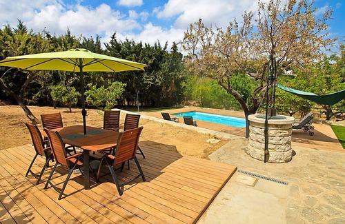 Inca: Very beautiful, comfortable farm estate "Can Coll", renovated, surrounded by trees. Outside the resort, in a quiet, sunny position, 500 m from the edge of the forest, 24 km from the sea, 24 km from the beach. Private: natural garden, swimming pool angular (4 x 8 m, seasonal availability: 01.Jan. - 31.Dec.). Outdoor shower, patio, garden furniture, barbecue. In the house: with TV, WiFi, washing machine, tumble dryer. Parking at the house. Shop 1.9 km, grocery 1.5 km, supermarket 1.6 km, restaurant 1.9 km, bar 1.5 km, bakery 1.5 km, café 1.5 km, internet café 1.8 km, pedestrian zone 1.6 km, bicycle rental 1.9 km, pub garden 1.9 km, 20 minute walk to the centre, bus stop 2 km, railway station 2.5 km, ferry 30 km, sandy beach 24 km pebble beach 24 km, shingle beach 24 km, rocky beach 24 km, 1.8 km. Sports harbour 24 km, marina 24 km, golf course (18 hole) 28 km, surf school 24 km, sailing school 28 km, tennis 2.5 km, riding stable 2.5 km, sports centre 2 km, cycle lane 500 m. Nearby attractions: saclasta.com Wine Tours. Object suitable for 4 adults groups of teenagers on request only. Please note: Loading and unloading of baggage is possible at the holiday house. Airfield 40 km from the property.