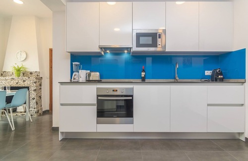 the interior of the house is perfect for relaxing with your family and friends The spacious living and dining room is equipped with AC and Smart TV. In addition, there is a table for 6 people. The kitchen, which is independent and has a ceramic hob and AC, has everything you need to prepare any dish. In the laundry room you will find a washing machine, an iron and an ironing board. In the house there are also three double bedrooms (one of them with AC) and two bathrooms, one with a shower and the other with a bathtub. If you are travelling with your baby, we can provide you with a cot and a highchair.