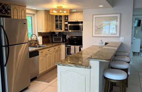 this beautiful, updated canal home has two bedrooms, two baths upstairs and a one-bath studio apartment downstairs It offers various sleeping arrangements. 8 people can be accommodated upstairs and 8 people downstairs.