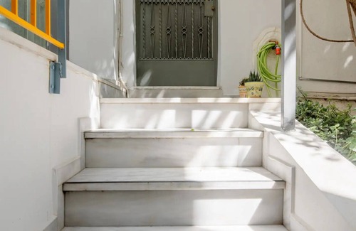 Enjoy a peaceful retreat in the heart of Athens with this charming one-bedroom apartment. Featuring a luxurious king-size bed, a private bathroom, and a fully equipped kitchen, this space is perfect for both relaxation and convenience. Step outside and unwind in the serene inner courtyard, surrounded by vibrant bougainvillea—a beautiful spot to sip your morning coffee or evening drink. The apartment also offers air-conditioning and central heating to ensure you stay comfortable no matter the season.
