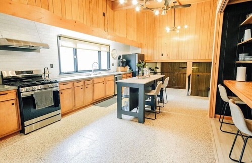 Perched beside the river, this distinctive rental home blends adventure and relaxation seamlessly. Its unique features include an exhilarating rock climbing wall and an inviting game room, ensuring excitement for all ages. Inside, modern comforts harmonize with rustic charm, offering spacious living areas, a fully equipped kitchen, and cozy bedrooms overlooking the scenic waterway. Enjoy the gentle breeze and soothing sounds of the river from the private patio or explore nearby hiking trails and local attractions. Ideal for a relaxing getaway or a memorable family vacation immersed in nature s beauty.