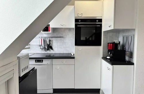 Accommodation: Come and place your suitcases in this charming T3 apartment with beautiful sea views, in the heart of the charming Erquy resort, in a private residence, less than 100m from the beach of the Bourg d'Erquy, the center and shops.The residence has direct access to Boulevard de la Mer and the beach, thanks to private access.This three-room apartment offers:- A living room with lounge area (fauteuils, TV, Hi-Fi channel), offering a nice view of the port and the central beach of Erquy, as well as a dining table for 4 guests; - An open kitchen on the fully equipped living room with: sink, 4 induction hobs, hood, oven, refrigerator - freezer, microwave, dishwasher, filter coffee maker, Nespresso coffee machine, kettle and toaster.- A separate bedroom with a Queen Size double bed (160x200cm); - A bathroom with a bathtub with shower wall, basin and washing machine; A separate W.C.; Mezzanine:- One bedroom with double bed Queen Size (160x200cm); - A living area with sofa, armchair and connected TV; - Parking on the free locations of Foch Street. - Charges included: bed linen, linen (towels and towels)- Wi-Fi access; Services offered as an option and by reservation :Cleaning end of stay : 60 € (subject to the rules of procedure of the agency)An autonomous arrival is expected after 6:00 p.m. and during the closing days of the agency. Key boxes are available outside the agency.