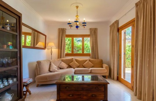 Large, cosy single-family house "Cap Blanc", 2 storeys. 400 m from the centre of Sa Torre, 16 km from the centre of Llucmayor, 50 km from the centre of Manacor, in a quiet, sunny position residential area (villas), 200 m from the sea. Private: property 1'000 m2 (fenced), garden with lawn and wildlife garden, swimming pool (9 x 5 m, seasonal availability: 01.Jan. - 31.Dec.). Patio, pergola, garden furniture, pool maintenance by the owner/gardener. In the house: internet access, WiFi, storage room for bicycles, air conditioning, washing machine. Stepped path (2 steps) to the house. Parking, public parking on the road. Supermarket 2 km, restaurant 400 m, sandy beach "Playa de Palma" 16 km, rocky beach "Maioris" 2.5 km. Golf course 2.5 km. Please note: car recommended. Suitable for families. Object suitable for 6 adults. The owner does not accept any groups. The owner does not accept any youth groups. Airfield 25 km from the property. Neighbourhood highly sensitive to noise. Quietness and good behaviour expected.