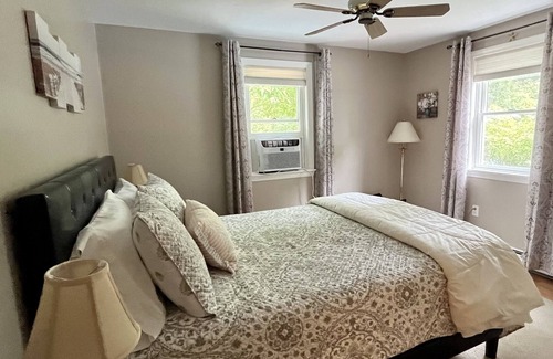 our spacious 600+ sq ft. guest suite is perfect for couples, with plenty of natural light and new furnishings. The fully-equipped kitchen includes a full-sized fridge, microwave oven, two-burner hot plate, toaster, Keurig coffee maker (with k-cups, creamer, and sugars provided), and cooking essentials. The suite also features a large smart TV, free Wi-Fi, and air conditioning for your comfort. Guests will appreciate the convenience of the in-suite washer/dryer, while all bed linens and bath/pool towels are provided for a stress-free stay. relax in the comfortable queen bed and enjoy your cape cod getaway!