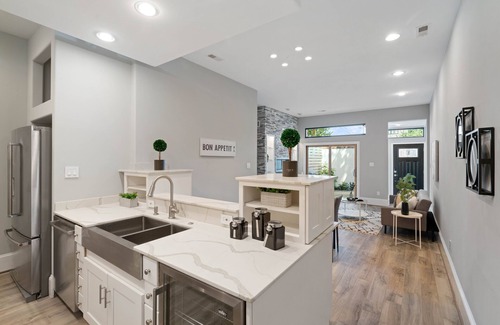 Modern Condo/Townhome in a perfect hideaway from the main street. Just in time for summer with an amazing roof top terrace in historic and beautiful Capitol Hill! This one-of-a-kind builder owned home offers off-street parking, chic finishes, grand views of the Nation's Capital, and the privacy of an urban private getaway. The home sports an owner's suite with two spacious closets, including a walk-in, bathed in natural sun light, an airy private balcony, and a sauna-style bathroom with dual vanity, large soaking tub, and rain shower and three shower heads. The stunning chef-approved gourmet kitchen was built, with quartz counter tops, high-end stainless-steel appliances and a walk-in pantry for added storage and efficiency.The main floor allows the flawless welcoming warmth of sunlight through floor to ceiling mitered glass, with an open view of the private courtyard and garden. Blocks away from grocery stores, diners, and unique retail shopping; a half mile away from the Metro, Lincoln Park and Barracks Row; a mile away from the H Street Corridor and Union Market there is so much to love about this great neighborhood, and you can enjoy it all!.