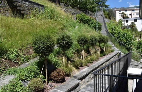 Intragna 10 km from Locarno: Modern, comfortable apartment block "Capriccio", 340 m a.s.l., 2 storeys. 3 apartments in the property. In the resort Intragna, in the district Centovalli, in a quiet, sunny position, in a cul-de-sac. For shared use: beautiful garden to relax, swimming pool angular (2 x 10 m, seasonal availability: 20.May. - 20.Oct.) with internal staircase. Patio, pergola, terrace, garden furniture. In the complex: reception, restaurant, breakfast room, central heating system. Breakfast possible on request (extra). 30 m long motor access to the house. Parking on the premises. Restaurant 10 m, bakery 500 m, bicycle rental 10 m, bus stop "Intragna, Stazione" 30 m, railway station "Centrovalli Expres FART Intragna" 50 m. Walking paths from the house 5 m. Nearby attractions: Ascona, Locarno, Ronco sopra Ascona, Isole di Brissago, Falconeria, Locarno, Madonna del Sasso, Orselina, Mercato Cannobio IT, Mercato Luino IT. Well-known lakes can easily be reached: Lago Maggiore, Lago di Lugano, Lago di Como. Hiking paths: Centovalli, Vallemaggia, Valle Verzasca, Cardada, Monte Tamaro- Splash &SPA. Please note: baby equipment. Additional accommodations can be booked. Property ref. CH6655.55 is situated on the same property.