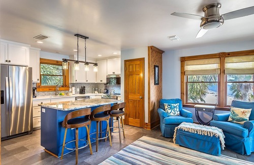 captain's quarters is a warm, homey, and cozy stand-alone home with all of the bells and whistles Beautiful wood and tilework throughout the home gives you a one-of-a-kind luxury getaway right on your private slice of Carrabelle Beach. The one bedroom home is furnished with a king size bed, pull-out queen sleeper, top-of-the-line appliances, and everything you need for a relaxing beach vacation, hunting trip or fishing excursion in some of the best fishing grounds in the south. Relax in one of the screened-in porches or venture out into the sunshine on the beach. Keep up on your work-out routine in the free weight open-air gym. Jump in one of the furnished kayaks for a fun paddle around St. George Sound and share the day with friends & family and many varieties of wildlife that call this area home. Spark the night with a bonfire next to lapping waves while cooking your day's catch on furnished charcoal or gas grills. do everything or do nothing and enjoy your vacation on the forgotten coast!