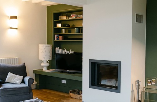 chic and raw, these are the two words that could sum up the character house The colours are intense and elegant, with a warm palette of green. The decoration is meticulous, the combinations of materials are sought after: concrete meets stone on the walls and floors.