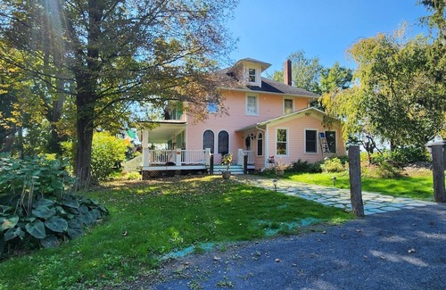 Overlooking the falls and front lawn and gardens, this subtle lilac oasis with possible adjoining suite (the Sparrow) will enchant you with a sumptuously comfortable Serta Perfect Sleeper Hybrid queen size bed, vintage furnishings, organic cotton bed and bath linens - and robes. Private large luxury bathroom with soaking tub featuring all-natural, cruelty free and carbon-neutral Plaine Products accessible via your own key just outside the door..