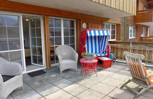 "carina 4 4", 3-room apartment 110 m2 on 1st floor Spacious and bright, very comfortable and tasteful furnishings: open large living/dining room with panoramic window with dining table, cable TV and hi-fi system. Exit to the balcony. 1 room with 1 double bed and 1 sleeping facility. 1 large room with panoramic window with 1 double bed. Exit to the terrace. Large, open kitchen (oven, dishwasher, 4 ceramic glass hob hotplates, toaster, kettle, microwave, electric coffee machine, raclette grill, fondue Set (cheese)). Shower/bidet/WC. Underfloor heating. Balcony, south facing position, large terrace, west facing position and north facing position. Terrace furniture, barbecue (portable), deck chairs. Marvellous view of the countryside and the resort. Facilities: hair dryer. Internet (WiFi, free). Garage (1 car) at the house. Please note: non-smokers only. Maximum 1 pet/ dog allowed.