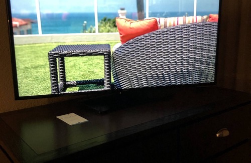 This beautiful one bedroom, one bathroom, single level, first floor unit is located in the very desirable and quaint Carlsbad inn community. One bedroom, one bathroom unit, with pull out bed, accommodates up to four adults comfortably and is easily accessible for those with limited mobility. There is a newly renovated, fully loaded kitchen and comfortable living room with sofa sleeper. There are flat screen televisions in the bedroom and living room. The complex has a 24 hour front don’t desk, over 25 schedule activities per week, and an outdoor family friendly heated pool and an adult hot tub as well as a dedicated children’s pool, It also has a fitness and activity center and children’s playground. There are boogie boards, sand toys, beach umbrellas and chairs, beach towels and bikes available for your enjoyment at no added cost. Just walk across the street to enjoy the spectacular beach or walk to Carlsbad Village where you will find many quaint shops and restaurants. This an interval ownership condo so availability is limited. Please check calendar for specific dates..