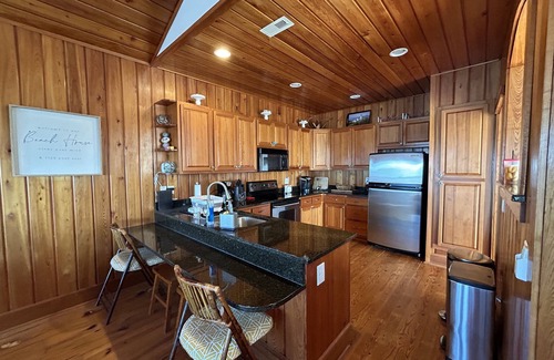 this home boasts 5 bedrooms and sleeps up to 10 guests And with 4.5 baths, there is room for everyone! Dining room table with bench seating on two sides sits 8 comfortably, with 3 additional seats at a low eat-up granite bar - perfect for the kids. (see below for a more detailed breakdown of bedrooms to see if they would properly accommodate your crew!)