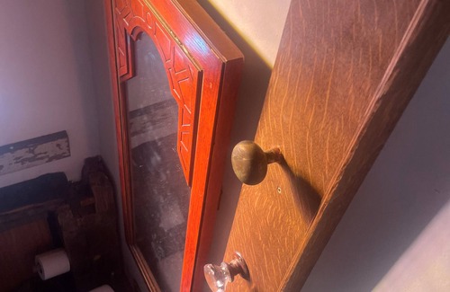 enjoy the spacious grassy yard & relax under the huge rain shower or have a soak in the old clawfoot tub WiFi, small washer/dryer, & fully equipped tiny kitchen w/ stainless appliances & countertop made from original owner Lowry Overacre’s plumbing workbench make the space a comfortable, efficient, & unforgettable home away from home. The hand-crafted queen bed & custom-made cherry daybed provide flexible sleeping options, while special touches like the restored stained glass windows & historic star bricks on the bathroom floor add real Lynchburg history to everything you touch.