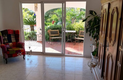 the large pool with its inviting terrace is available to all guests, as well as the large, beautifully landscaped garden with sculptures, pond, fountain u Rest places invite you to relax. In about 6 - 8 km away there are two golf courses. A shopping mall (Portal de las Marinas) can be reached in about 8 km.