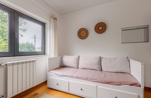 The holiday home Cosy Village Home is a four-bedroom property located in Parede, a small traditional Portuguese village overlooking the nearby hills. This two-storey house includes a living room, a fully equipped kitchen, three bedrooms, two bathrooms, and an additional toilet, accommodating up to 10 people. Bedroom 2 can sleep four people. One of the bedrooms is set up as an office (not in the living room) and has a single bed that can be converted into a double. You also have high-speed Wi-Fi (suitable for video calls) with a dedicated workspace, TV, washing machine, books, and toys for children. A cot and high chair are also available. The house does not have air conditioning but is well ventilated thanks to a skylight and several windows. Outside, you will find a charming garden, balcony, and barbecue area to enjoy. You are only a 5-minute drive from São Pedro Beach, 10 minutes from Estoril and its beaches, 20 minutes from Cascais, and 30 minutes from Lisbon. You can walk to the tennis club, golf course, schools, international schools, and train station.