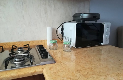 in the living room there is a sofa, prepared to be used as a double bed (14x2.0 meters), with a mattress topper for greater comfort.