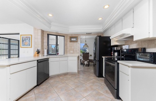 as you enter through the open spaced vaulted living room walk through 16 feet of pocket sliders to the most incredible view of the14 x 30 heated pool and salt canal