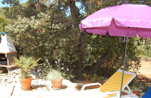 The holiday home In this detached holiday home north of Faro and northeast of Estói you can enjoy the spaciousness and comfort for a relaxing holiday in undisturbed privacy. The quietly located accommodation with an outdoor pool can only be reached by car and is located in the countryside in a sought-after residential area with isolated villas in the hilly interior, about 16 km from Faro Airport. The air-conditioned house extends over a living space of 155 m² and can accommodate up to 8 people. It has three bedrooms and three bathrooms with toilet, a cozy open living and dining room with sofa bed for 2 people and terrace access, as well as an integrated fully equipped kitchen. The other two bedrooms are on the ground floor. While you sleep in two adjacent single beds in the first, the second room has a double bed. Relax in the spacious living area on a sofa bed for 2 people after a day trip with a view of the flat-screen TV with satellite.-TV and DVD player. A dining table with 6 chairs invites you to a self-prepared meal. The kitchen offers you a dishwasher, an electric cooker, an oven, a fridge and freezer combination as well as a microwave, coffee machine, kettle and toaster. The first en-suite bathroom is equipped with a shower, sink and toilet. In the second bathroom, which is adjacent to the second bedroom, there is a bathtub with shower and toilet, a hand wash basin and a washing machine. An external staircase leads to the upper floor. The upper floor is furnished like an additional holiday apartment for two people. Here you will find a large sleeping area with a double bed and wardrobe. A television provides entertainment while you lie comfortably in bed. In addition, there is a small kitchenette for breakfast with a sink and a fridge, as well as a seating area with a table. Of course there is also a bathroom with a shower, sink and toilet on the upper floor. From the living room on the ground floor you enter the covered terrace, which is furnished with a seating area for an outdoor meal. Alternatively, use a picnic area with a grill. Cool off after an eventful day with a refreshing dip in the pool or outside shower and soak up the sun in one of 6 deck chairs on the terrace. The property is difficult to see from the outside, has an automatic gate, is partially fenced and has parking spaces for up to three cars. Numerous restaurants are waiting in the charming village of Estói a short drive away (approx. 4 km), where there is a weekly market every Sunday. Bikes can also be rented there for a leisurely excursion into the area. The nearby center of Faro (14 km) offers further restaurants, restaurants and night life. A trip to Faro with many shops and boutiques is a must. The city of Olhão, 13 km away, offers numerous restaurants specializing in fish and seafood. The historic Roman villa complex Milreu is just 4.7 km from the property. This holiday home is 22 km from the beach on Faro Island. The green areas of the Ria Formosa Natural Park are 17 km away. Faro International Airport is 13 km away.