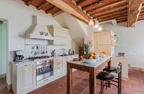 A lovely 1.5 km drive through olive groves brings you to the private, gated entrance. The Apartment Casa San Gennaro is part of a six units farmhouse called 'Il Borghetto' (formerly a rural, rustic farmhouse from the 14th century) in the hills below the village of San Gennaro near Lucca. The apartment is a tasteful blend of rustic, contemporary and antique furnishings. A 5 x 12 metre swimming pool with beautifully manicured lawns is shared by the apartments and is located on the terrace above the apartment with lovely views down the valley toward Lucca.We are proud to offer a lifestyle in the heart of Tuscany that is truly unique. Picture yourself on the grounds of an historic 14th century building, rebuilt to the highest standards using only traditional Tuscan materials and methods, from handmade terra cotta tiled floors, to chestnut beams and tiled ceilings. The property also makes extensive use of hand built stone walls in keeping with the character and traditions of Tuscany.Two large ensuite bedrooms/bathrooms are on the 1st floor (American 2nd floor) and the top floor has the master bedroom and ensuite bath.The location of il Borghetto in San Gennaro is superb. In the medium hills above the Lucca plain and below the historic village of San Gennaro, we offer a piece of solitude in the Tuscan hills. Views of vineyards and olive groves are offered from every vantage point on the property. The newly built property features the stones of the 14th century building that stood on this very spot. Modern inside, the apartment retains the Tuscan charm of handmade terra cotta floors and chestnut beam ceilings throughout. Dedicated shared laundry room.It is advisable to have a car with high suspension to comfortably navigate the 500-meter country dirt road leading to the house.Enjoy a scenic 20-minute hike up the hill to San Gennaro, where you can savour a meal at the local trattoria, Il Corno Rosso. The area is surrounded by well-marked hiking paths, maintained by the Club Alpino Italiano, offering numerous opportunities for exploration..